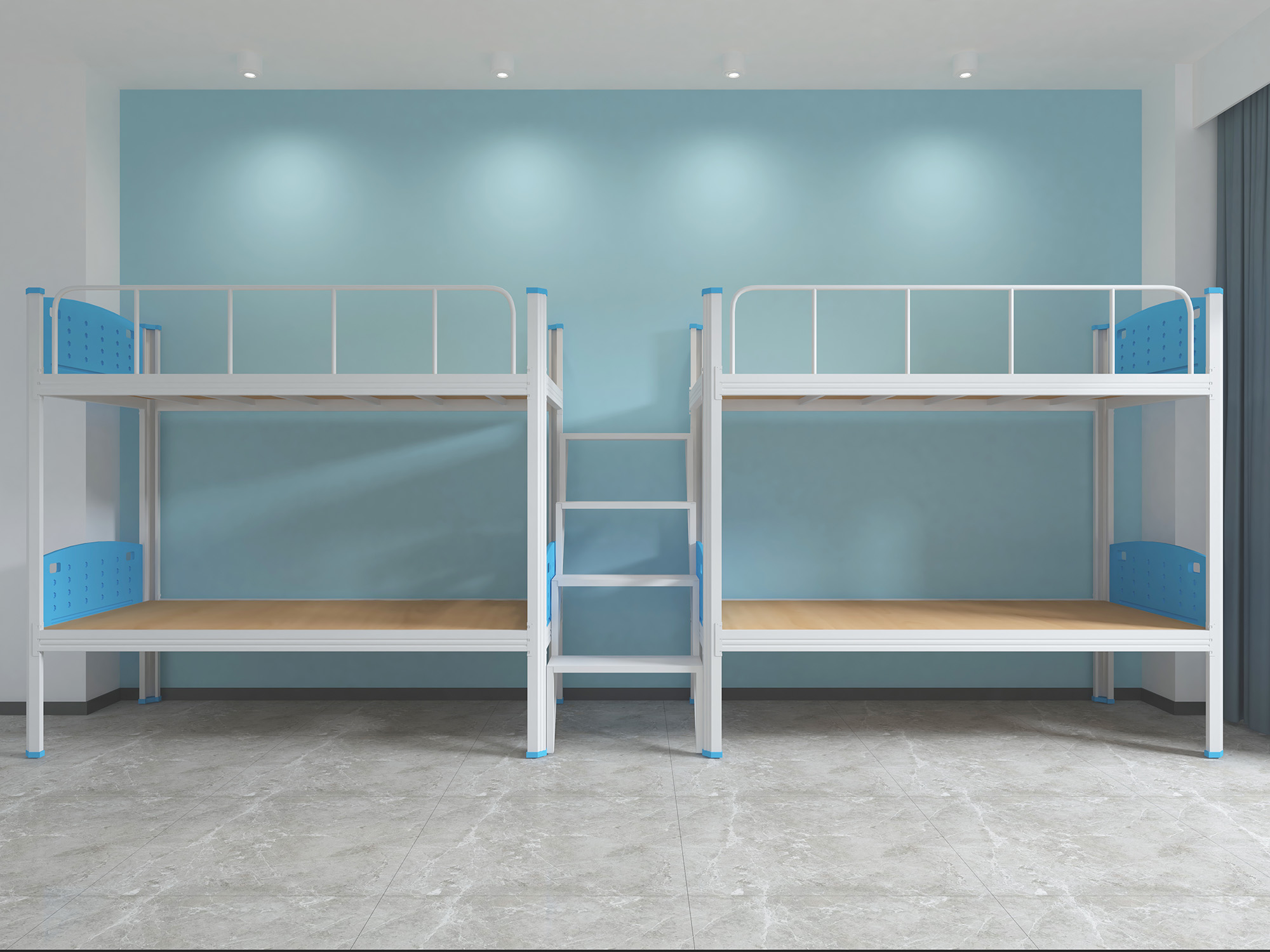 1.8、床支撐:采用尺寸為 20*30*0.9mm 優質方管制作,掛在長橫梁里面,床板壓住后無法取出來,避免取出當做暴力工具。