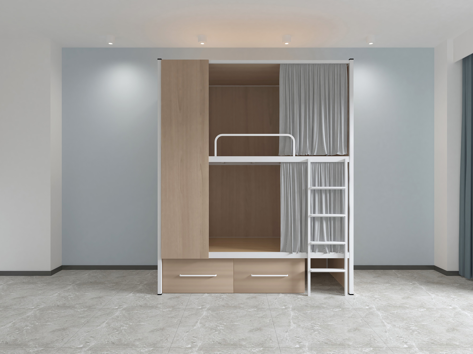 產品介紹:松山湖周邊雙層床廠家參數4460*970*1800mm1、床邊立柱: 采用冷軋鋼板,經特制成型線軋制而成,其立面為V型,立柱正面為斜邊形設計,起到防撞